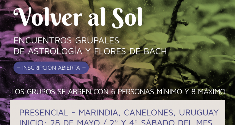 Abrimos inscripciones a los encuentros grupales de astrología y flores de Bach, “Volver al Sol”, que se realizarán de mayo a septiembre en nuestra Escuela.